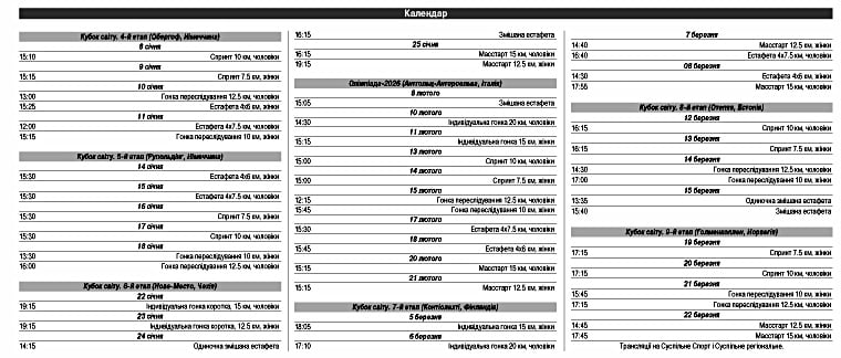 Після невеликої паузи відновлюються міжнародні змагання біатлоністів. Попереду майже поспіль три етапи Кубка світу. А потім найголовніше випробування сезону – Зимова Олімпіада-2026. Наступний, четвертий етап, світового кубку стартує вже 8 січня, у четвер, в німецькому Обергофі.