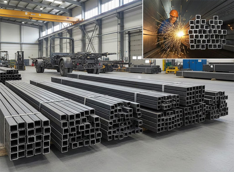 - Рамы наземных транспортных средств и остовы морских судов воспринимают на себя довольно большую как статичную, так и динамическую нагрузку. Ее создают собственный и присутствующий у навесных элементов вес, ударные воздействия при погрузке содержимого или преодолении периодически возникающих на дороге препятствий, механические колебания и другие активные факторы воздействия. При таких условиях материал для изготовления несущего каркаса не только должен обладать изрядной прочностью, но также надежно соединяться из отдельных деталей в единую схему достаточно простыми методами сборки. Описываемая разновидность проката удовлетворяет обоим требованиям, так как конструкционная сталь сама по себе хорошо противостоит растяжению и легко поддается электродуговой сварке с образованием надежных швов, а квадратная или прямоугольная форма поперечного сечения эффективно сопротивляется деформации изгиба.