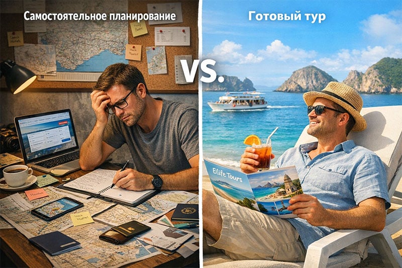 Раньше я был уверен: «правильный» отпуск — это только самостоятельная поездка. Я мог часами сравнивать перелёты, читать отзывы об отелях, выбирать районы и строить маршруты так, будто готовлю рабочий проект. В теории это выглядело как свобода, но на практике свобода часто превращалась в бесконечные решения и контроль. Именно поэтому, когда мне нужно быстро посмотреть, какие форматы поездок вообще доступны и с чего начать выбор, я захожу на Elife Tours.