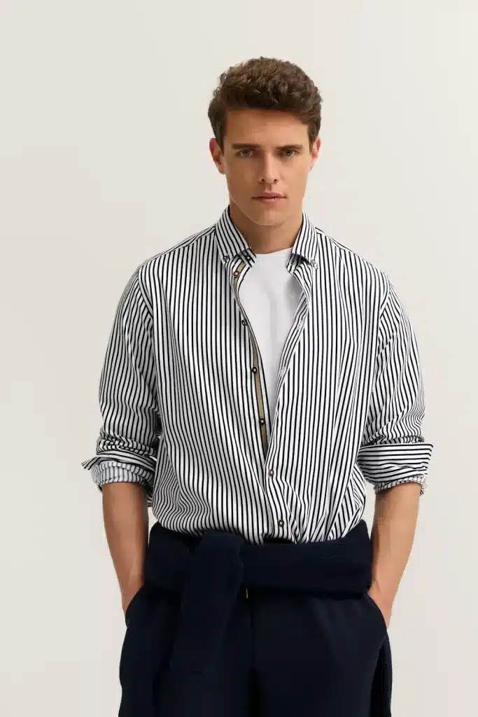 Довжина сорочки – одна із особливостей, яка визначає можливість носити такий тип чоловічого одягу заправленим у штани. Однак, стилісти пропонують доповнити весняний гардероб і модними сорочками навипуск. Вони універсальні та підходять для підтримання різних молодіжних стилів. Відомі європейські дизайнери, такі як Bugatti, допомагають відчути «весняний вайб», адже пропонують фірмові моделі, які легко підкреслюють охайний вигляд навіть у повсякденному образі.